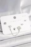 Skygo 925 Ayar Gümüş Çivi Pirinç Gümüş Renk Zirkon Taşlı Yonca Model Sallantı Zincir Detay Kadın Küpe Seti