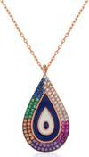 Birçok kültürde kötü enerjinin zararlarından korunmak için çeşitli tılsımlar kullanılmıştır. Doğu kültürlerinin çoğunda kullanılan tılsım ise gözdür. Nazar boncuğu da göz şeklinden ilhamla tasarlanmıştır. Mavi rengin seçilmesi de tesadüf değildir. Renkli gözlü kişilerin enerjisini daha etkili yansıttığı inancı gereği nazar boncukları çoğunlukla mavi olarak tasarlanır. Güzelliğiyle göz kamaştıran, nazardan korunmasını istediğiniz kişilere ve sevdiklerinize gümüş nazar boncuğu kolyeyi armağan edebilirsiniz. Ürünlerimizin tamamı el emeği ile üretilmiştir. Gümüş ve değerli taşlar nedeniyle ürün ağırlığında ± %10 sapma olabilmektedir.