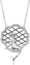 Günlük hayatınızda rahatlıkla kullanabileceğiniz bir model, sade tasarımıyla sevdiklerinize hediye edebileceğiniz kolyelerden biri olabilecek bu gümüş deniz kızı bayan kolye modeli 925 ayar gümüşten imal edilmiştir. Gümüş üzerine rodyum kaplama yapılmıştır. Rodyum kaplama yapılan gümüş bayan kolye modelleri parlaklığını uzun süre muhafaza eder ve oksitlenmesi gecikir. Kolye üzerinde bulunan beyaz taşlar zirkondur. Gümüş olan zincirin boyu ortalama 45cm'dir. Tüm gümüş bayan kolye modellerinde olduğu gibi bu deniz kızı bayan kolye modeli de el emeği ile üretilmiştir. Gümüş ve değerli taşlar nedeniyle belirtilen ortalama ürün ağırlığında ± %10 sapma olabilmektedir.
