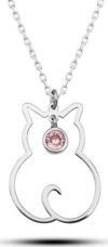 Gümüş Ekim Ayı Doğum Taşı Kedi Kadın Kolye