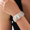 Şık ve fantezi görünümü seven kadınlar için ideal bir seçenektir. Koleksiyonlarda; gösteriş ve şıklığın peşinde olan kadınlar için tamamen el işçiliğiyşe yapılmış bu bilezik her zevke ve konsepte uygun modeli ile sizleri bekliyor. Bu şık modeli; doğum günü hediyesi, sevgililer günü hediyesi olarak özel günlerde tercih edebilirsiniz. Elişi kalemli kadın bilezik modeli 925 ayar gümüşten imal edilmiştir. Gümüş üzerine rodyum kaplama yapılmıştır. Rodyum kaplama yapılan gümüş kadın bilezik modelleri parlaklığını uzun süre muhafaza eder, oksitlenmesi gecikir. Tüm gümüş kadın bilezikler de olduğu gibi bu gümüş elişi kalemli kadın bilezik modeli de el emeği ile üretilmiştir. Gümüş ve değerli taşlar nedeniyle belirtilen ortalama ürün ağırlığında ± %10 sapma olabilmektedir.