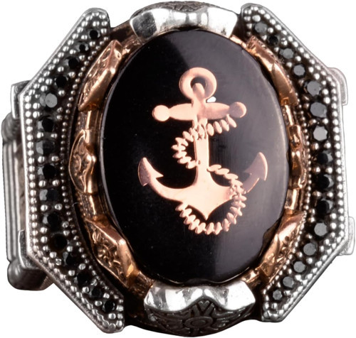 Kambo 925 Ayar Gümüş Erkek Yüzük - Çapa Yüzük - Kaptan Denizci Yüzüğü - Deniz Temalı Takı