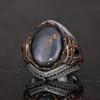 Doğal Opal Taşlı 925 Ayar Gümüş Erkek Yüzük - Eşsiz İfadeli Takı - Bronz Kaplama Tasarım