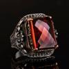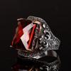 925 Ayar Gümüş Erkek Yüzük, Yapay Granat, Eşsiz El Yapımı Gümüş Yüzük Ağırlık: 20.37 gr