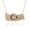 925 Ayar Gümüş Gold Ay Yıldız Türkiye Haritası Kadın Kolye - Image 1