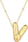 925 Ayar Gümüş Gold Balon V Harfi Kadın Kolye
