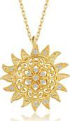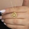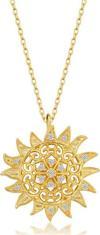 Güneş; ışığın, bilginin, iyiliğin, gücün ve yönetimin sembolüdür. Bu ışıl ışıl ve farklı tasarımıyla göz kamaştıran kolye; 925 ayar gümüşten imal edilmiştir. Gümüş üzerine gold kaplama yapılmıştır. Gold kaplama yapılan gümüş ürünler parlaklığını uzun süre muhafaza eder, oksitlenmesi gecikir. Gümüş beyaz taşlı güneş kadın kolye üzerinde bulunan taşlar zirkon'dur. Tüm gümüş kolyelerde olduğu gibi gümüş güneş kadın kolye de tamamı el emeği ile üretilmiştir. Gümüş ve değerli taşlar nedeniyle belirtilen ortalama ürün ağırlığında ± %10 sapma olabilmektedir.