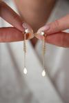 Nereze 925 Ayar Gümüş Gold Kaplama 5 Mm Tektaş Sallantılı Zincir Sade Damla Model Küpe