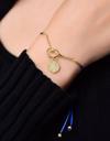 Maden : 925 Ayar Gümüş. Kaplama: Altın. Bileklik Zincir Uzunluğu: 18 cm. Taş: Zirkon. Figür En*Boy: 1 cm. Düğüm Uzunluğu:3,5 cm. Ürün Ağırlığı : 3,04 Gr ( +-). Gümüş ve değerli taşlar nedeniyle belirtilen ortalama ürün ağırlığında ± %5 sapma olabilmektedir. Teslimat: Ürün ahşap hediye kutusunda gönderilecektir. Kullanım: Parfüm, dezenfektan, çamaşır suyu gibi kimyasallardan uzak tutunuz.