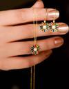 Papatya Silver 925 Ayar Gümüş Gold Kaplama Özel Tasarım Opal Taşlı Renklii Papatya Kolye ve Küpe Set
