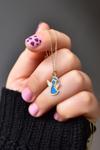 Papatya Silver 925 Ayar Gümüş Gold Kaplama Parlayan Rüya Serisi Tasarım Beyaz-mavi Ebruli Cam Boyalı Melek Kolye