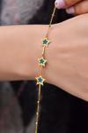 Papatya Silver 925 Ayar Gümüş Gold Kaplama Parlayan Rüya Serisi Yıldız Tasarım Ebruli Cam Boyalı Bileklik