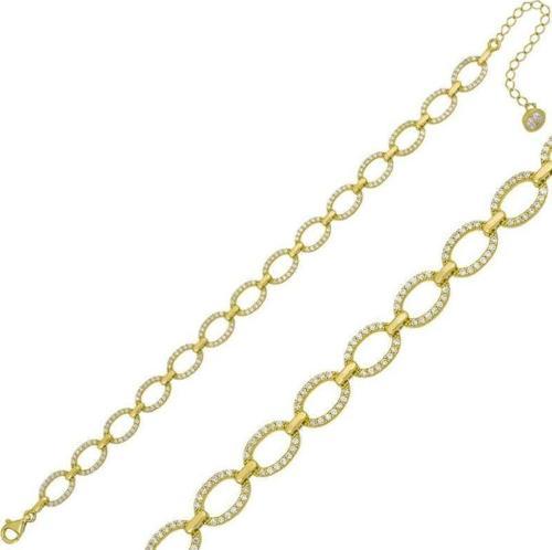 Gümüş Gold Oval Taşlı Bayan Bileklik