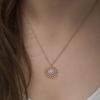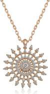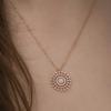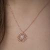 Güneş; ışığın, bilginin, iyiliğin, gücün ve yönetimin sembolüdür. Bu ışıl ışıl ve farklı tasarımıyla göz kamaştıran kolye; 925 ayar gümüşten imal edilmiştir. Gümüş üzerine rose altın kaplama yapılmıştır. Rose altın kaplama yapılan gümüş ürünler parlaklığını uzun süre muhafaza eder, oksitlenmesi gecikir. Gümüş beyaz taşlı güneş kolye üzerinde bulunan taşlar zirkon'dur. Tüm gümüş kolyelerde olduğu gibi gümüş güneş kolye de tamamı el emeği ile üretilmiştir. Gümüş ve değerli taşlar nedeniyle belirtilen ortalama ürün ağırlığında ± %10 sapma olabilmektedir.