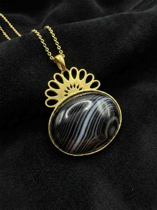 Roza Silver 925 Ayar Gümüş Halef Dizisi Gözyaşı Kolyesi, Hareli Oniks Doğal Taşlı Elişi Telkari Gümüş Kolye