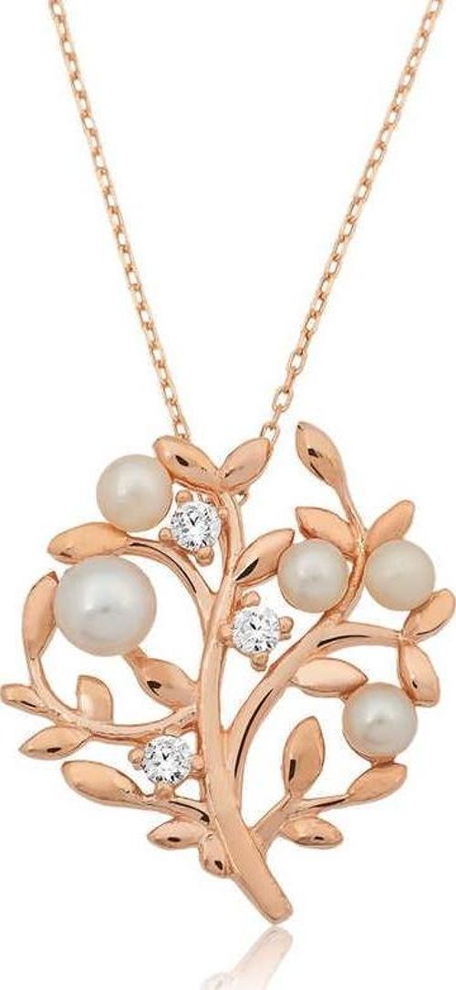 Ağaç kolye; yeni bir yaşamı, hayatın enerjisini ve yepyeni fırsatları temsil eder. Kökleri yerdeyken, göklere yükselen dalları ile cennetle yeryüzünü birleştiren bir köprü olmuştur. Yeni bir yaşamın büyümesini, soyunu devam ettirmesini ve ailenin simgesi olarak yorumlanıyor. Ve tam da bu nedenle genellikle aile olarak görülen ya da “ailem olmanı istiyorum” dileğiyle çok sevilen insanlara hediye ediliyor. Siz de sevdiklerinize ve aileniz olmasını istediğiniz değer verdiğiniz kişilere bu kolyeyi hediye edebilir, onlara vermiş olduğunuz değeri gösterebilirsiniz. Gümüş hayat ağacı bayan kolye modeli 925 ayar gümüşten imal edilmiştir. Gümüş üzerine rose altın kaplama yapılmıştır. Rose altın kaplama yapılan gümüş bayan kolye modelleri parlaklığını uzun süre muhafaza eder ve oksitlenmesi gecikir. Kolye üzerinde bulunan taşlar inci ve zirkondur. Gümüş olan zincir boyu ortalama 45 cm'dir. Tüm gümüş bayan kolye modellerinde olduğu gibi gümüş hayat ağacı bayan kolye modeli de el emeği ile üretilmiştir. Gümüş ve değerli taşlar nedeniyle belirtilen ortalama ürün ağırlığında ± %10 sapma olabilmektedir.