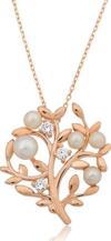 Ağaç kolye; yeni bir yaşamı, hayatın enerjisini ve yepyeni fırsatları temsil eder. Kökleri yerdeyken, göklere yükselen dalları ile cennetle yeryüzünü birleştiren bir köprü olmuştur. Yeni bir yaşamın büyümesini, soyunu devam ettirmesini ve ailenin simgesi olarak yorumlanıyor. Ve tam da bu nedenle genellikle aile olarak görülen ya da “ailem olmanı istiyorum” dileğiyle çok sevilen insanlara hediye ediliyor. Siz de sevdiklerinize ve aileniz olmasını istediğiniz değer verdiğiniz kişilere bu kolyeyi hediye edebilir, onlara vermiş olduğunuz değeri gösterebilirsiniz. Gümüş hayat ağacı bayan kolye modeli 925 ayar gümüşten imal edilmiştir. Gümüş üzerine rose altın kaplama yapılmıştır. Rose altın kaplama yapılan gümüş bayan kolye modelleri parlaklığını uzun süre muhafaza eder ve oksitlenmesi gecikir. Kolye üzerinde bulunan taşlar inci ve zirkondur. Gümüş olan zincir boyu ortalama 45 cm'dir. Tüm gümüş bayan kolye modellerinde olduğu gibi gümüş hayat ağacı bayan kolye modeli de el emeği ile üretilmiştir. Gümüş ve değerli taşlar nedeniyle belirtilen ortalama ürün ağırlığında ± %10 sapma olabilmektedir.