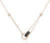 İçe içe geçmiş halka kolye, sembollerden hoşlanmayıp sadelikten yana olanların tercih edebileceği oldukça şık bir tasarımdır. Bir halkasının taşsız diğerinin ise siyah zirkon taşlarla kaplı olduğu iç içe geçmiş bu şık kolyeyi farklı anlamlar yükleyerek sevdiklerinize armağan edebilirsiniz. Gümüş iç içe geçmiş halka kolye, son yıllarda oldukça popüler modeller arasındaki yerini almıştır. Gümüş iç içe geçmiş kolye 925 ayar gümüşten imal edilmiştir. Bu kolye üzerine rose altın kaplama yapılmıştır. Rose altın kaplama yapılan ürünler parlaklığını uzun süre muhafaza eder. Üzerinde bulunan taşlar zirkon'dur. Tüm gümüş kolye modellerinde olduğu gibi gümüş iç içe geçmiş halka kolye modeli de el emeği ile üretilmiştir. Gümüş ve değerli taşlar nedeniyle belirtilen ortalama ürün ağırlığında ± %10 sapma olabilmektedir.