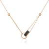 İçe içe geçmiş halka kolye, sembollerden hoşlanmayıp sadelikten yana olanların tercih edebileceği oldukça şık bir tasarımdır. Bir halkasının taşsız diğerinin ise siyah zirkon taşlarla kaplı olduğu iç içe geçmiş bu şık kolyeyi farklı anlamlar yükleyerek sevdiklerinize armağan edebilirsiniz. Gümüş iç içe geçmiş halka kolye, son yıllarda oldukça popüler modeller arasındaki yerini almıştır. Gümüş iç içe geçmiş kolye 925 ayar gümüşten imal edilmiştir. Bu kolye üzerine rose altın kaplama yapılmıştır. Rose altın kaplama yapılan ürünler parlaklığını uzun süre muhafaza eder. Üzerinde bulunan taşlar zirkon'dur. Tüm gümüş kolye modellerinde olduğu gibi gümüş iç içe geçmiş halka kolye modeli de el emeği ile üretilmiştir. Gümüş ve değerli taşlar nedeniyle belirtilen ortalama ürün ağırlığında ± %10 sapma olabilmektedir.