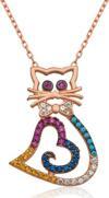 Evlerimizin sevimli neşe kaynağı kediler, temiz olmalarının yanı sıra masumiyetin simgesidir. Asil ve mantıklı bir kişiliğe, mükemmel sezgilere ve akılcı bir duyarlılığa sahiptirler. Özel günlerin en tercih edilen hediye seçeneklerinden olan gümüş takılar, sevdiklerini mutlu etmek ve onlara her an yanlarında taşıyabilecekleri bir hediye vermek isteyenler için tasarlandı. Masumiyetin simgesi olan kedi figürlü gümüş kolyeyi kız kardeşinize, sevgilinize ya da arkadaşlarınıza armağan edebilirsiniz. Kalpli kedi kolye modeli 925 ayar gümüşten imal edilmiştir. Gümüş üzerine rose altın kaplama yapılmıştır. Rose altın kaplama yapılan gümüş kolye modelleri parlaklığını uzun süre muhafaza eder ve oksitlenmesi gecikir. Gümüş olan zincir boyu ortalama 45 cm'dir. Gümüş kalpli kedi kolye diğer tüm gümüş kolye modellerinde olduğu gibi el emeği ile üretilmiştir. Gümüş ve değerli taşlar nedeniyle belirtilen ortalama ürün ağırlığında ± %10 sapma olabilmektedir.