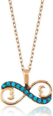 Aşkı bütün saflığı, doğallığı ve içtenliğiyle anlatmanın yoludur kalp... Sonsuz aşkı anlatmak için oluşturulan bu özel tasarımı sevgilinize doğum günü, sevgililer günü yada özel günlerde hediye ederek onları mutlu edebilirsiniz... Bu aşk dolu kolye, 925 ayar gümüşten üretilmiştir. Gümüş kalpli sonsuzluk kolye üzerinde bulunan taşlar firuzedir. Bu gümüş kolye üzerine rose kaplama yapılmıştır. Rose kaplama yapılan kolyeler parlaklığını uzun süre muhafaza eder, gümüşü pembe rengine dönüştürür ve oksitlenmeyi geciktirir. Tüm gümüş kolyelerde olduğu gibi bu gümüş kalpli sonsuzluk kolye de el emeği ile üretilmiştir. Gümüş ve değerli taşlar nedeniyle ürün ağırlığında ± %10 sapma olabilmektedir.