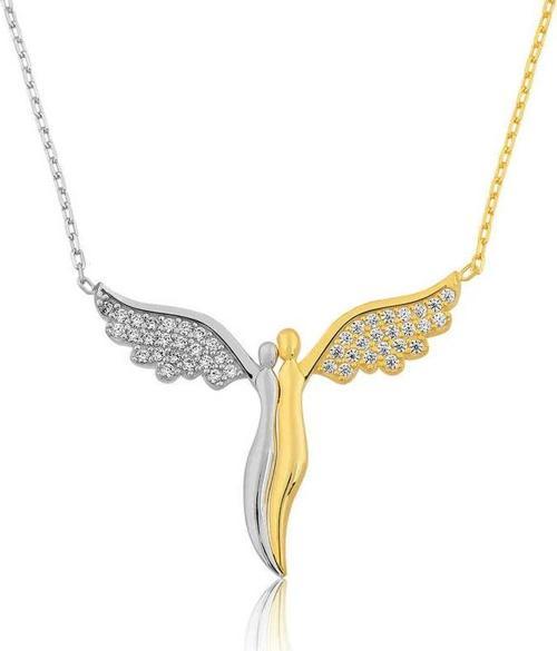 Melekler saflığın ve temizliğin simgeleridir. Bu nedenle melek kolye hediye edilen kişiye melek kadar saf ve temiz olduğu mesajı verilmektedir... Aşkınızı meleklerin koruması için tasarlanan bu özel kanatlı meleklerin yer aldığı kolyeyi sevgilinize; doğum günü, sevgililer günü ve özel günlerde hediye ederek onları mutlu edebilirsiniz. Kolye; 925 ayar gümüşten imal edilmiştir. Gümüş kanatlı melekler kolye üzerine rodyum ve altın kaplama yapılmıştır. Rodyum kaplama yapılan tüm kolyeler parlaklığını uzun süre muhafaza eder ve oksitlenmesini geciktirir. Altın kaplama da ürünü sarı renge dönüştürür. Tüm gümüş kolyelerde olduğu gibi bu gümüş kanatlı melekler kolye de el emeği ile üretilmiştir. Gümüş ve değerli taşlar nedeniyle ürün ağırlığında ± %10 sapma olabilmektedir.