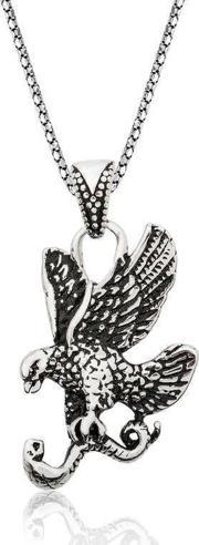 Kuşların kralı olan ve savaşmak üzere dünyaya inen kartal, özellikle savaşçı ve güçlü olmasıyla tanınır; bu yüzden pek çok ulusun sembolü olmuştur. Bu derin anlamdan esinlenerek oluşturulan kartal erkek kolye; kendinize yada sevdiklerinize doğum gününde, babalar gününde yada özel günlerde hediye edebilirsiniz. Bu şık erkek kolye; 925 ayar gümüşten imal edilmiştir. Gümüş üzerine oksit kaplama yapılmıştır. Oksit kaplama yapılan kolyeler parlaklığını uzun süre muhafaza eder. Tüm erkek kolyelerde olduğu gibi gümüş kartal erkek kolye de el emeği ile üretilmiştir. Gümüş ve değerli taşlar nedeniyle belirtilen ortalama ürün ağırlığında ± %10 sapma olabilmektedir.