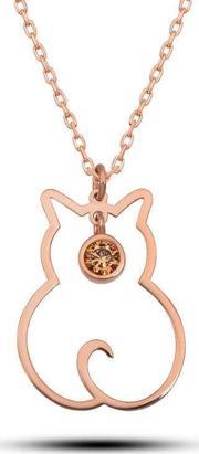 Gümüş Kasım Ayı Doğum Taşı Kedi Kadın Kolye
