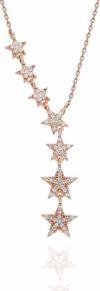 Gecenin parlak ışıltısını anımsatan yıldız, sembolik olarak evrenin sonsuzluğunu, uzaktaki bir noktayı ifade eder. Parıltının, ışığın, aydınlığın ve umudun sembolüdür. Her insan özel, her sevilen eşsizdir. Eşsiz sevginin ömür boyu sürecek birlikteliğin simgesi gümüş sıralı yıldızlar bayan kolye ile sevdiklerinizi mutlu etmeye ne dersiniz... Kolye 925 ayar gümüşten imal edilmiştir. Gümüş üzerine rose kaplama yapılmıştır. Rose kaplama yapılan gümüş kolyeler parlaklığını uzun süre muhafaza eder ve oksitlenmeyi geciktirir. Üzerinde bulunan beyaz taşlar zirkondur. Gümüş kolye modellerinin tamamında olduğu gibi gümüş kayan yıldızlar kolye modeli de el emeği ile üretilmiştir. Gümüş ve değerli taşlar nedeniyle belirtilen ortalama ürün ağırlığında ± %10 sapma olabilmektedir.