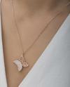 Kelebek; kadınlarca tercih edilen en popüler motiflerden biridir. Sevenlerine doğanın gizemini ve insan hayal gücünün zenginliğini hatırlatır. Özgürlüğü masumiyeti ve saflığı simgeleyen kelebekler, tertemiz sevginin ve aşkın ifadesidir. Sizin olduğu kadar sevdiklerinizin de keyifle takacağı kelebek kadın kolye, sevdiğinize en güzel hediyelerden biri olacaktır. Kolye 925 ayar gümüşten imal edilmiştir. Gümüş üzerine rose kaplama yapılmıştır. Rose kaplama yapılan gümüş kadın kolyeler parlaklığını uzun süre muhafaza eder ve oksitlenmesini geciktirir. Gümüş olan zincir boyu ortalama 45 cm'dir. Tüm gümüş kadın kolyelerde olduğu gibi gümüş kelebek kadın kolye modeli de el emeği ile üretilmiştir. Gümüş ve değerli taşlar nedeniyle belirtilen ortalama ürün ağırlığında ± %10 sapma olabilmektedir.
