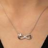Sonsuza kadar sürecek aşkı anlatmanın en güzel yollarından biri de sevgiliye sonsuzluk sembollü gümüş takılar hediye etmektir. Sonsuzluk sembolü ebedi aşkın ve sadakatin işareti olarak evlilik yıl dönümü veya sevgililer günü gibi özel günlerde alınabilecek anlamlı hediyelerinden biri olabilecektir. Kelebekli sonsuzluk kolye 925 ayar gümüşten imal edilmiştir. Gümüş üzerine rose altın kaplama yapılmıştır. Rose altın kaplama yapılan gümüş kolye modelleri parlaklığını uzun süre muhafaza eder ve oksitlenmesi gecikir. Kolye üzerinde bulunan taşlar zirkondur. Gümüş kelebekli sonsuzluk kolye tamamı el emeği ile üretilmiştir. Tüm gümüş kolye modellerinde olduğu gibi gümüş kelebekli sonsuzluk kolye de el emeği ile üretilmiştir. Gümüş ve değerli taşlar nedeniyle belirtilen ürün ağırlığında ± %10 sapma olabilmektedir.