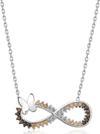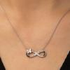 Sonsuza kadar sürecek aşkı anlatmanın en güzel yollarından biri de sevgiliye sonsuzluk sembollü gümüş takılar hediye etmektir. Sonsuzluk sembolü ebedi aşkın ve sadakatin işareti olarak evlilik yıl dönümü veya sevgililer günü gibi özel günlerde alınabilecek anlamlı hediyelerinden biri olabilecektir. Kelebekli sonsuzluk kolye 925 ayar gümüşten imal edilmiştir. Gümüş üzerine rose altın kaplama yapılmıştır. Rose altın kaplama yapılan gümüş kolye modelleri parlaklığını uzun süre muhafaza eder ve oksitlenmesi gecikir. Kolye üzerinde bulunan taşlar zirkondur. Gümüş kelebekli sonsuzluk kolye tamamı el emeği ile üretilmiştir. Tüm gümüş kolye modellerinde olduğu gibi gümüş kelebekli sonsuzluk kolye de el emeği ile üretilmiştir. Gümüş ve değerli taşlar nedeniyle belirtilen ürün ağırlığında ± %10 sapma olabilmektedir.