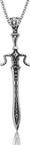 Kılıç tarih boyunca bir çok uygarlık tarafından kullanılmış silahların icadından önce insan oğlunun iktidar gücünü ortaya koyup uygulayabilmesi için kullandığı çeşitli boyutlarda olabilen, keskin kenarlı, sivri uçlu bir silahtır. Kılıcın boyutu tarihler boyunca,farklı uluslarda, farklı boyutlarda olmuştur. Türkler Orta Asya’ya göç edince kılıç yapım merkezleri kurarlar. Kılıç geleneği Selçuklular ve Osmanlı dönemlerinde devam eder. Anadolu kılıçlarını batının kılıçlarından ayıran özellik; eğri, çok su verilmiş ve eğriliklerinden dolayı çok rahat kullanılabilir olmalarıydı. Türkler kılıca, üzerine yemin edilebilecek derecede önem atfederken, demir ve onu eriten ateşin ruhsal bir yönü olduğunu savunmuşlardır. Yetenekli bileklerde kılıç harikalar yaratabilirdi ve Eski Türk uygarlıklarında süvariler, atları ve kılıçları ile gömülmek istemişlerdir. Kılıç, insanın zor bir maden olan demir üzerinde ateşle neler yapabileceğinin en güzel kanıtlarından biridir. Hatta isterse onu bir savaş aleti haline getirebilir. Eğer eski zaman kahramanlıkları ilginizi çekiyorsa, yakın temasla mücadeleyi sahici buluyorsanız, sadece bir kılıç kolyeniz eksik demektir. Kılıç kolye modeli 925 ayar gümüşten imal edilmiştir. Gümüş üzerine oksit kaplama yapılmıştır. Ürünlerimizin tamamında olduğu gibi gümüş kılıç kolye modeli de el emeği ile üretilmiştir. Gümüş ve değerli taşlar nedeniyle ürün ağırlığında ± %10 sapma olabilmektedir.