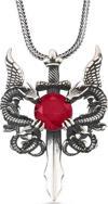Gümüş Kırmızı Taşlı Ejderha Erkek Kılıç Kolye