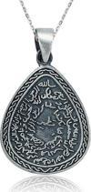 Üzerinde Kalem Suresi 51. ve 52. Ayetler, Ashab-i Kehfin isimleri ve ortada da KITMiR yazısı bulunmaktadir. Kolye üzerinde "nazar ayeti" ve Ashab-ı Kehf'in isimleri bulunmaktadır. Nazar ve diğer kötülüklerden korunmak için, evde ve işyerinde bereketi arttırmak için bu duayı okumalı ve bulundurmalısınız. Bereketin artması için, iş yerinin ve evin dört duvarına asılması gereken bir duadır. Kolye; 925 ayar gümüşten imal edilmiştir. Gümüş üzerine oksit kaplama yapılmıştır. Oksit kaplama yapılan kolyeler parlaklığını uzun süre muhafaza eder. Tüm gümüş kolyelerde olduğu gibi gümüş Kıtmir duası damla kolye de el emeği ile üretilmiştir. Gümüş ve değerli taşlar nedeniyle belirtilen ortalama ürün ağırlığında ± %10 sapma olabilmektedir.