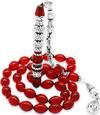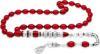 Tesbihane 925 Ayar Gümüş Kral Püsküllü Gümüş Üç Şerefeli Nakkaş İmameli Bayrak Kırmızısı Ateş Kehribar Tesbih
