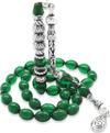 925 Ayar Gümüş Kral Püsküllü Gümüş Üç Şerefeli Nakkaş İmameli Yeşil Ateş Kehribar Tesbih