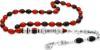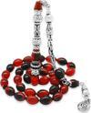 Gümüş Hediye Al 925 Ayar Gümüş Kral Püsküllü Nakkaş İmameli Lale Tasarım Kırmızı-Siyah Ateş Kehribar Tesbih