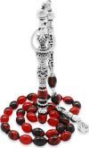 Gümüş Hediye Al 925 Ayar Gümüş Kral Püsküllü Nakkaş İmameli Nargile Tasarım Kırmızı-Siyah Ateş Kehribar Tesbih