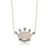 Sevdiklerine başınızın tacı olduklarının mesajını vermek için uygun bir model. Günlük hayatta da rahatlıkla kullanılabilecek bu kraliçe tacı kolye 925 ayar gümüşten imal edilmiştir. Gümüş üzerine rose altın kaplama yapılmıştır. Rose altın kaplama yapılan gümüş kolye modelleri parlaklığını uzun süre muhafaza eder ve oksitlenmesi gecikir. Kolye üzerinde bulunan taşlar zirkondur. Gümüş olan zincirin boyu ortalama 45 cm'dir. Bu gümüş kraliçe tacı kolye el emeği ile üretilmiştir. Gümüş ve değerli taşlar nedeniyle belirtilen ürün ağırlığında ± %10 sapma olabilmektedir.