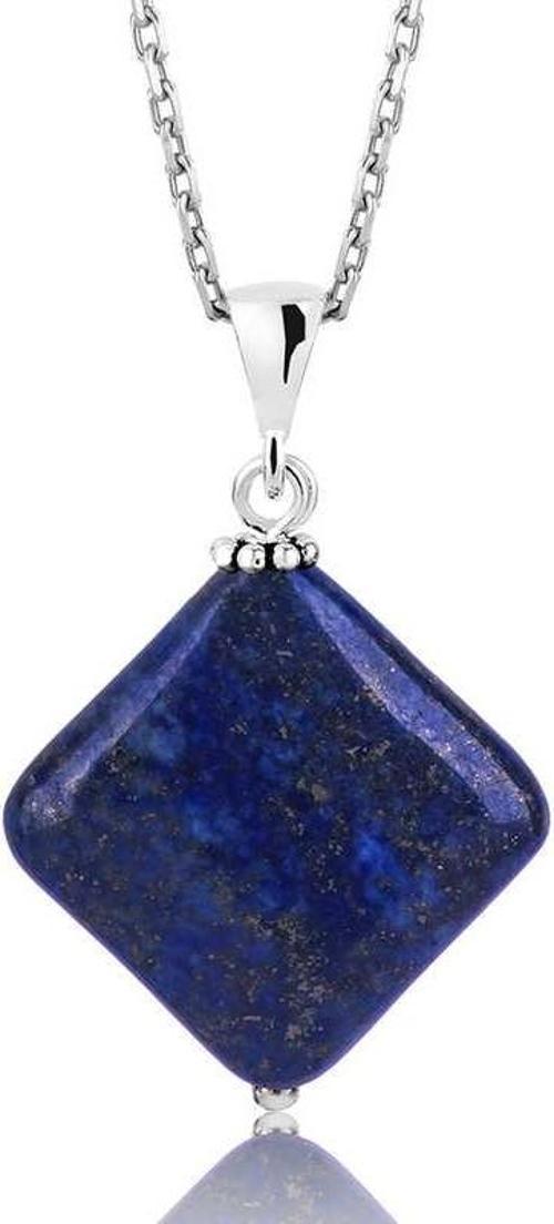 Lapis taşı saydam bir özelliğe sahiptir ve gece taşı olarakta bilinir. Birçok şifası bulunmakla beraber özellikle solunum yollarına ve kemik ağrılarına birebir faydası vardır. Bu şık kolye; doğum günü hediyesi, sevgililer günü hediyesi veya annelere hediye olarak özel günlerde tercih edilebilecek mükemmel bir seçenektir. Kolye 925 ayar gümüşten imal edilmiştir. Gümüş üzerine rodyum kaplama yapılmıştır. Rodyum kaplama yapılan kolyeler parlaklığını uzun süre muhafaza eder ve oksitlenmesi gecikir. Üzerinde bulunan taşlar lapistir. Tüm gümüş kolyelerde olduğu gibi gümüş lapis doğal taş kolye de el emeği ile üretilmiştir. Gümüş ve değerli taşlar nedeniyle belirtilen ortalama ürün ağırlığında ± %10 sapma olabilmektedir.
