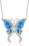 Özgürlüğü, masumiyeti, saflığı simgeleyen mavi kelebek kolye 925 ayar gümüşten imal edilmiştir. Gümüş üzerine rodyum kaplama yapılmıştır. Rodyum kaplama yapılan gümüş kolye modelleri parlaklığını uzun süre muhafaza eder ve oksitlenmesi gecikir. Kolye üzerinde bulunan taşlar zirkondur. Gümüş olan zincirin boyu ortalama 45 cm'dir. Tüm gümüş kolye modellerinde olduğu gibi gümüş mavi kelebek kolye modeli de el emeği ile üretilmiştir. Gümüş ve değerli taşlar nedeniyle belirtilen ortalama ürün ağırlığında ± %10 sapma olabilmektedir.