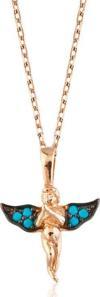 Melekler saflığın ve temizliğin simgeleridir. Bu nedenle melek kolye hediye edilen kişiye melek kadar saf ve temiz olduğu mesajı verilmektedir... Melek kolye; sevgilinize doğum günü , sevgililer günü yada özel günlerde hediye ederek onları mutlu edebilirsiniz... Bu özel melek tasarımı 925 ayar gümüşten imal edilmiştir... Tasarım melek kanadı kolye üzerinde bulunan taşlar firuzedir. Bu gümüş kolye üzerine rose kaplama yapılmıştır. Rose kaplama yapılan tüm kolyeler parlaklığını uzun süre muhafaza eder, gümüşe pembe rengi verir , oksitlenmeyi geciktirir. Zincir boyu ortalama 45 cm'dir. Tüm gümüş kolyelerde olduğu gibi bu gümüş melek kolye de el emeği ile üretilmiştir. Gümüş ve değerli taşlar nedeniyle ürün ağırlığında ± %10 sapma olabilmektedir.