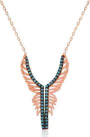 Melekler saflığın ve temizliğin simgeleridir. Bu nedenle melek kolye hediye edilen kişiye melek kadar saf ve temiz olduğu mesajı verilmektedir... Bu özel melek kanadı tasarımı 925 ayar gümüşten imal edilmiştir... Tasarım melek kanadı kolye üzerinde bulunan taşlar zirkondur. Bu gümüş kolye üzerine rose kaplama yapılmıştır. Rose kaplama yapılan tüm kolyeler parlaklığını uzun süre muhafaza eder, gümüşe pembe rengi verir. Tüm gümüş kolyelerde olduğu gibi bu gümüş melek kanadı kolye de el emeği ile üretilmiştir. Gümüş ve değerli taşlar nedeniyle ürün ağırlığında ± %10 sapma olabilmektedir.