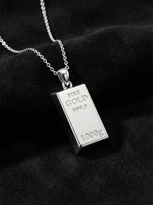 Külçe altın görünümünde tasarlanmış 925 Ayar Gümüş kolyedir.