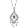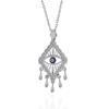 Birçok kültürde kötü enerjinin zararlarından korunmak için çeşitli tılsımlar kullanılmıştır. Doğu kültürlerinin çoğunda kullanılan tılsım ise gözdür. Nazar boncuğu da göz şeklinden ilham alınarak tasarlanmıştır. Mavi rengin seçilmesi de tesadüf değildir. Renkli gözlü kişilerin enerjisini daha etkili yansıttığı inancı gereği nazar boncukları çoğunlukla mavi olarak tasarlanır. Güzelliğiyle göz kamaştıran, nazardan korunmasını istediğiniz kişilere ve sevdiklerinize gümüş nazarlı göz kolyeyi armağan edebilirsiniz. Gümüş kolye üzerinde rodyum kaplama yapılmıştır. Rodyum kaplama yapılan gümüş kadın kolyeler parlaklığını uzun süre muhafaza eder, oksitlenmesi gecikir. Gümüş olan zincir boyu ortalama 45 cm'dir. Ürünlerimizin tamamı el emeği ile üretilmiştir. Gümüş ve değerli taşlar nedeniyle ürün ağırlığında ± %10 sapma olabilmektedir.
