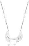 Müzik; diğer sanat dallarından farklı olarak işitsel, zaman içinde ilerleyen müzikal seslerle düşünceleri aktaran ve duygulara hitap eden ruhsal bir sanattır. Notalardan oluşan müzik temalı kolye gösteriş ve şıklığın peşinde olan kadınlar için tasarlanmıştır. Bu şık modeli; doğum günü hediyesi, sevgililer günü hediyesi olarak özel günlerde tercih edebilirsiniz. Gümüş nota kanatları kolye, 925 ayar gümüşten imal edilmiştir. Gümüş üzerine rodyum kaplama yapılmıştır. Rodyum kaplama yapılan gümüş kolyeler parlaklığını uzun süre muhafaza eder, oksitlenmesi gecikir. Tüm gümüş kolyelerde olduğu gibi bu gümüş nota kanatları kolye modeli de el emeği ile üretilmiştir. Gümüş ve değerli taşlar nedeniyle belirtilen ortalama ürün ağırlığında ± %10 sapma olabilmektedir.