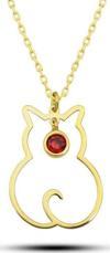 Gümüş Ocak Ayı Doğum Taşı Kedi Kadın Kolye