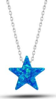 Gümüş Opal Mavi Taşlı Yıldız Kadın Kolye