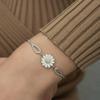 Papatya çiçeği, temiz sevgi anlamını ifade eder. En büyük özelliklerinden biri her sapında bir tane olmasıdır. Bu güzellik tasarlanarak ortaya çıkan bu ışıl ışıl bileklik, zirkon taşlarla süslenmiştir... Bu şık bileklik; doğum günü hediyesi, sevgililer günü hediyesi veya annelere hediye olarak özel günlerde tercih edilebilecek mükemmel bir seçenektir. Gümüş papatya bayan bileklik 925 ayar gümüşten imal edilmiştir. Bu bileklik üzerinde rodyum kaplama yapılmıştır. Rodyum kaplama yapılan ürünler parlaklığını uzun süre muhafaza eder. Üzerinde bulunan taşlar zirkon'dur. Tüm gümüş bayan bileklik modellerinde olduğu gibi gümüş papatya bayan bileklik modeli de el emeği ile üretilmiştir. Gümüş ve değerli taşlar nedeniyle belirtilen ortalama ürün ağırlığında ± %10 sapma olabilmektedir.